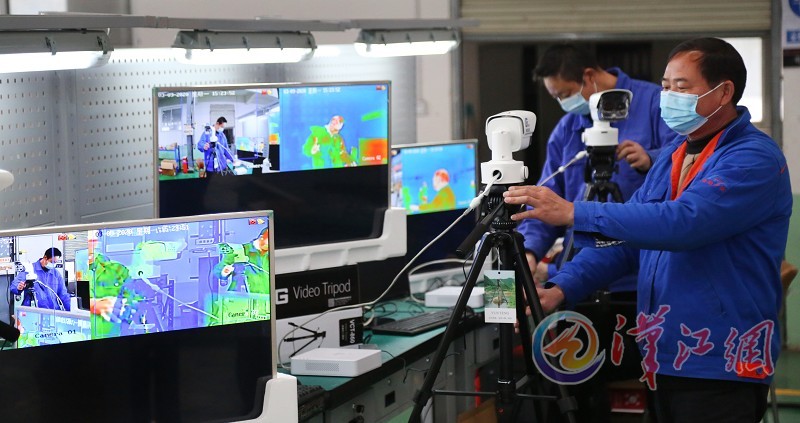 3月9日,在襄陽國鐵機電股份有限公司,工作人員正在調(diào)試熱成像快速測溫系統(tǒng)。本公司2月23日成功研發(fā)了熱成像快速測溫系統(tǒng),該系統(tǒng)可實現(xiàn)對進出人員體溫檢測、人臉識別、實名制驗證和考勤管理,可同時對30-50人進行體溫快速檢測、篩查、報警。在疫情防控期間,本公司一天能夠生產(chǎn)30多臺設備,目前用于全市的疫情防控指揮部門、部分醫(yī)院及復工復產(chǎn)的企業(yè),下一步將投入到學校。